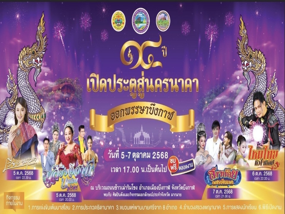 องค์การบริหารส่วนจังหวัดบึงกาฬ ขอเชิญเที่ยวงาน "14 ปี เปิดประตูสู่นครนาคา ออกพรรษาบึงกาฬ 2568"