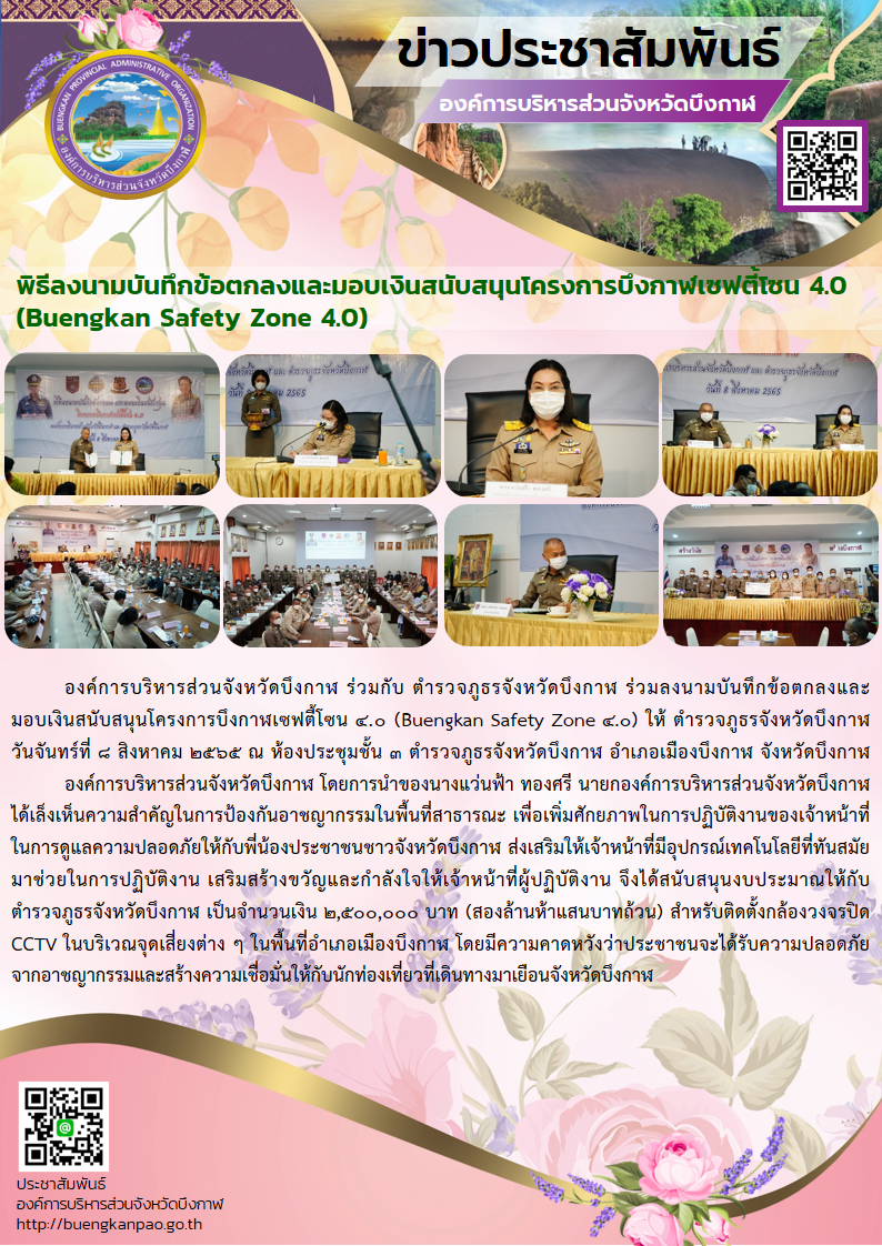 พิธีลงนามบันทึกข้อตกลงและมอบเงินสนับสนุนโครงการบึงกาฬเซฟตี้โซน 4.0 (Buengkan Safety Zone 4.0)