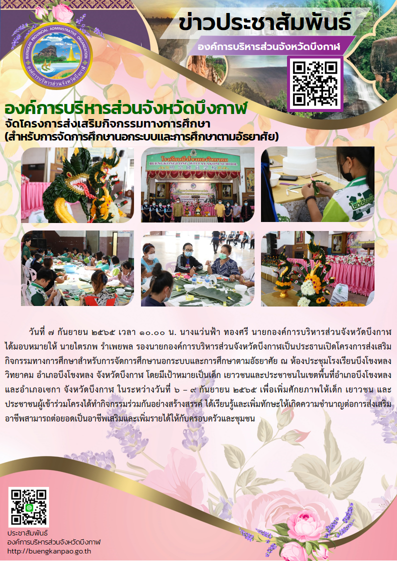 องค์การบริหารส่วนจังหวัดบึงกาฬจัดกิจกรรมทางการศึกษาสำหรับการศึกษานอกระบบและการศึกษาตามอัธยาศัย