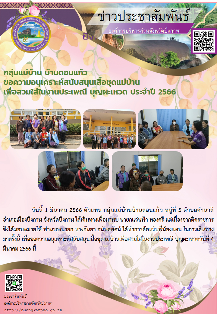 กลุ่มแม่บ้าน บ้านดอนแก้ว ขอความอนุเคราะห์สนับสนุนเสื้อชุดแม่บ้าน