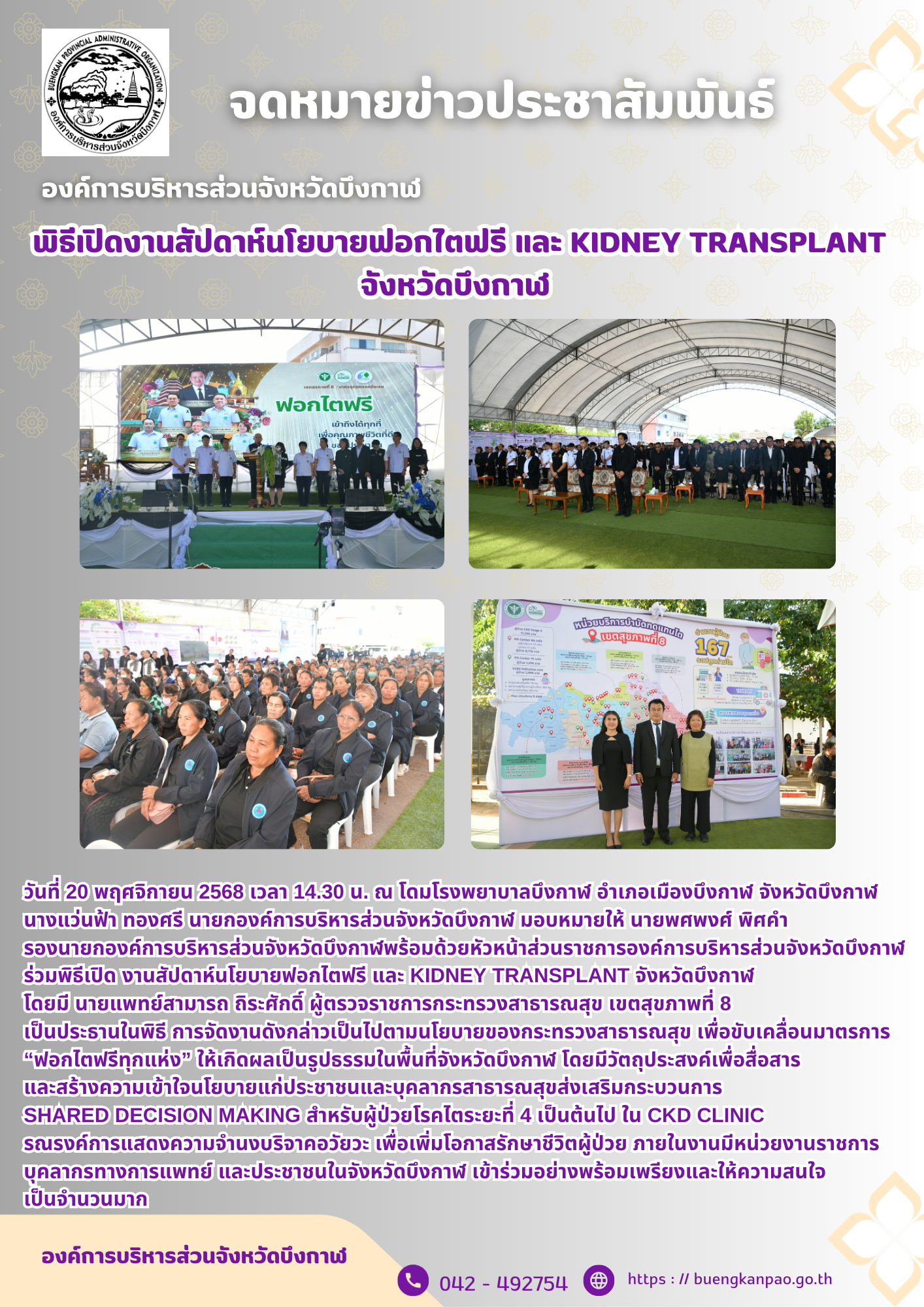 พิธีเปิดงานสัปดาห์นโยบายฟิกไตฟรี และ KIDNEY TRANSPLANT จังหวัดบึงกาฬ