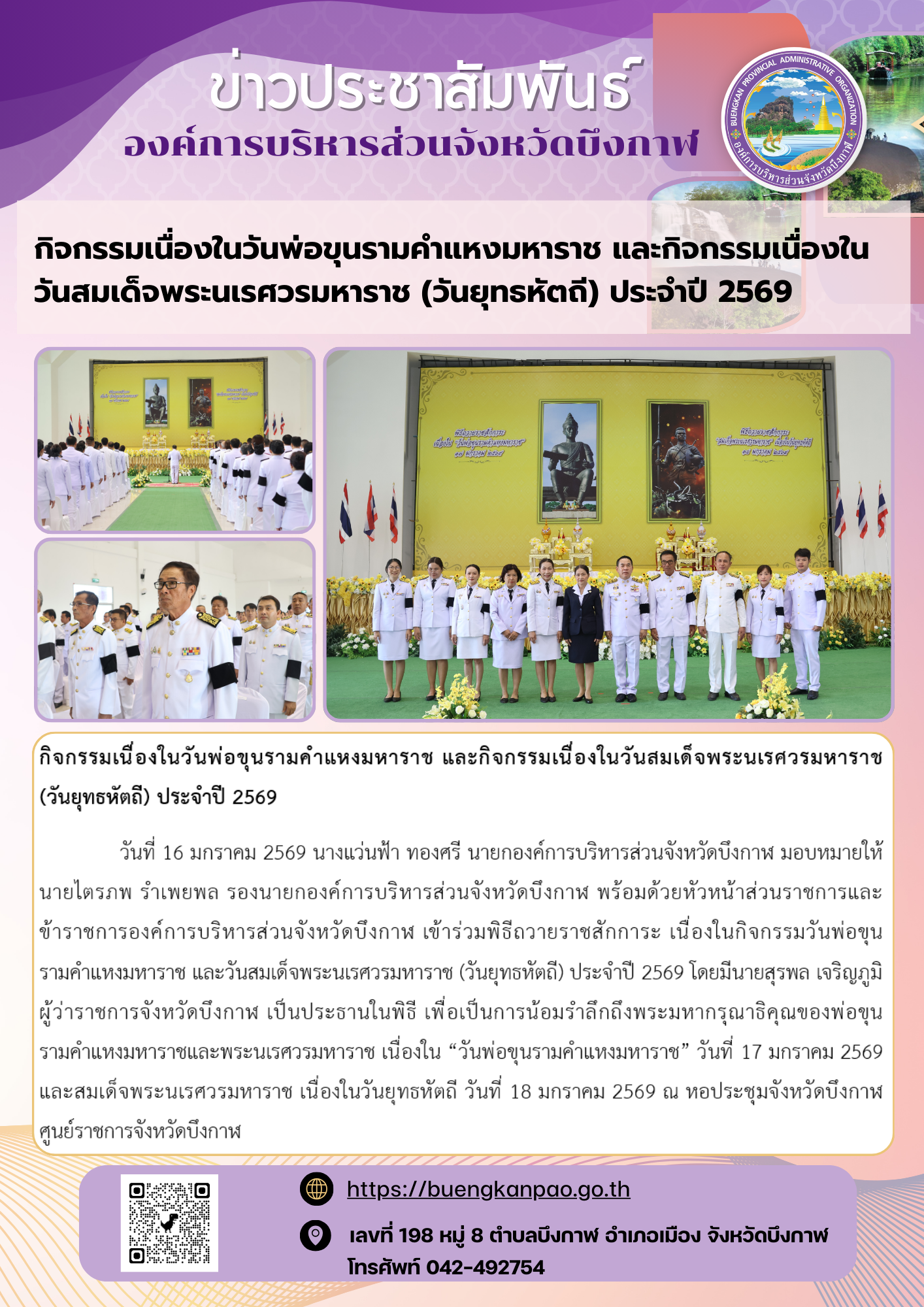 กิจกรรมเนื่องในวันพ่อขุนรามคำแหงมหาราช และกิจกรรมเนื่องในวันสมเด็จพระนเรศวรมหาราช (วันยุทธหัตถี) ประจำปี 2569