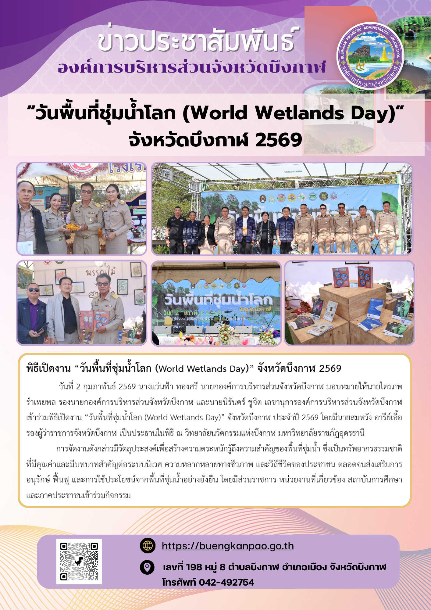 พิธีเปิดงาน “วันพื้นที่ชุ่มน้ำโลก (World Wetlands Day)” จังหวัดบึงกาฬ 2569