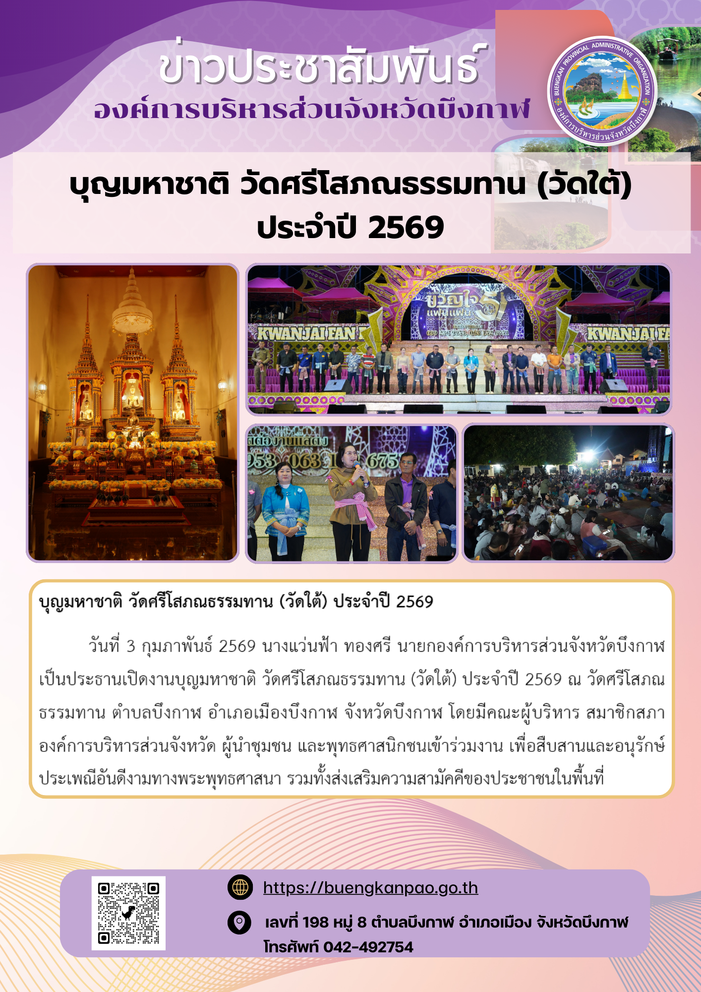 บุญมหาชาติ วัดศรีโสภณธรรมทาน (วัดใต้) ประจำปี 2569