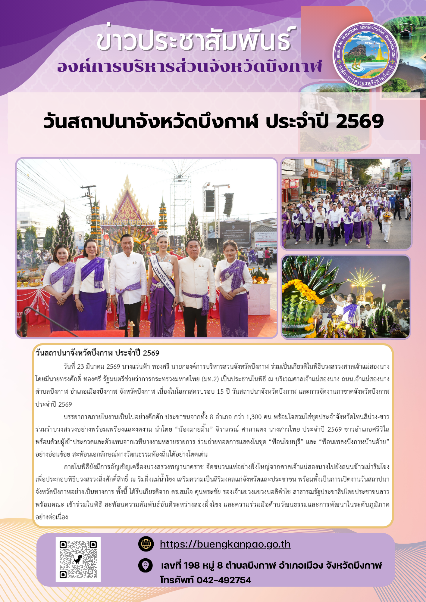 พิธีเปิดงานวันสถาปนาจังหวัดบึงกาฬ ครบรอบ 15 ปี อย่างยิ่งใหญ่ ประจำปี 2569