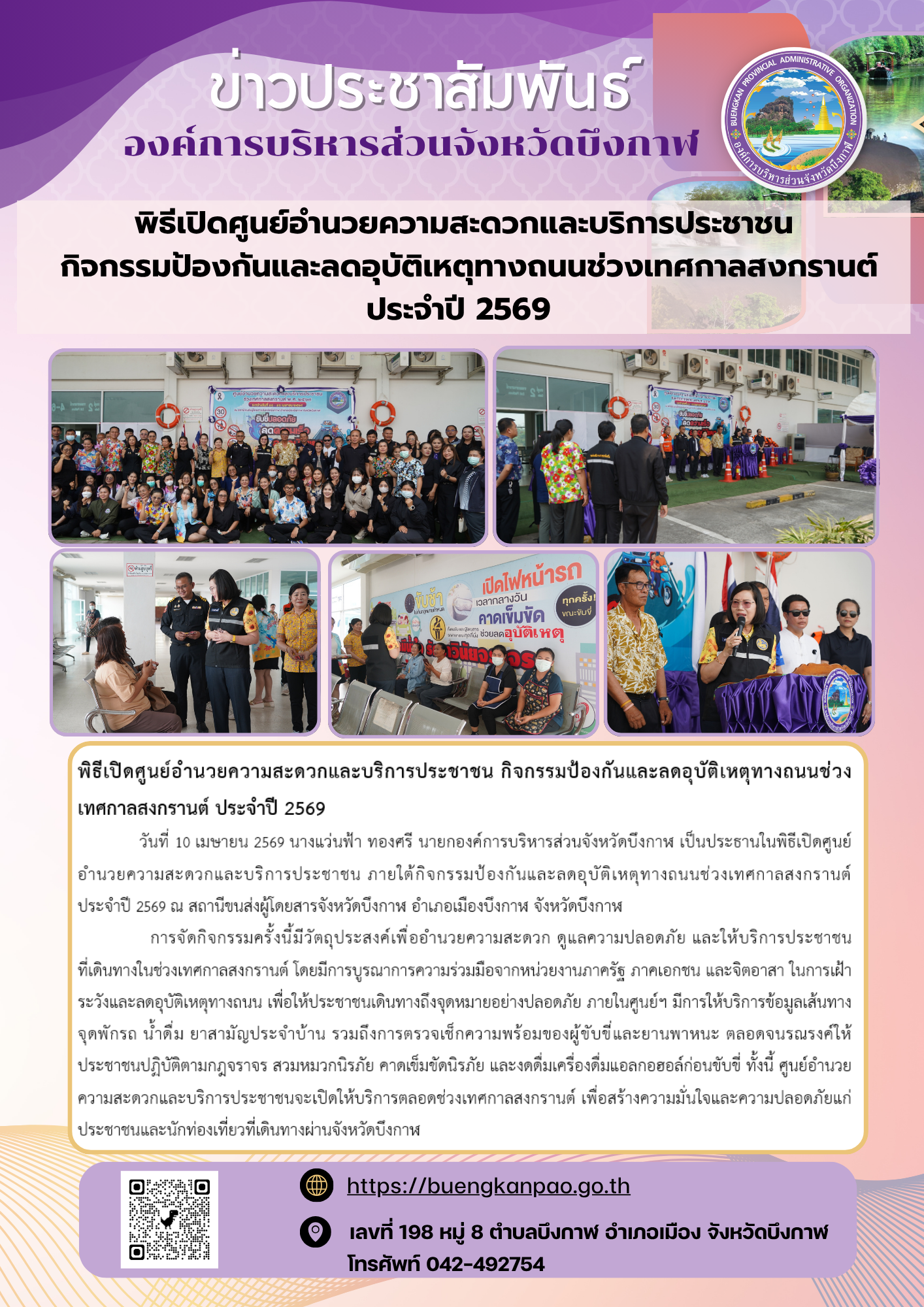พิธีเปิดศูนย์อำนวยความสะดวกและบริการประชาชน กิจกรรมป้องกันและลดอุบัติเหตุทางถนนช่วงเทศกาลสงกรานต์ ประจำปี 2569