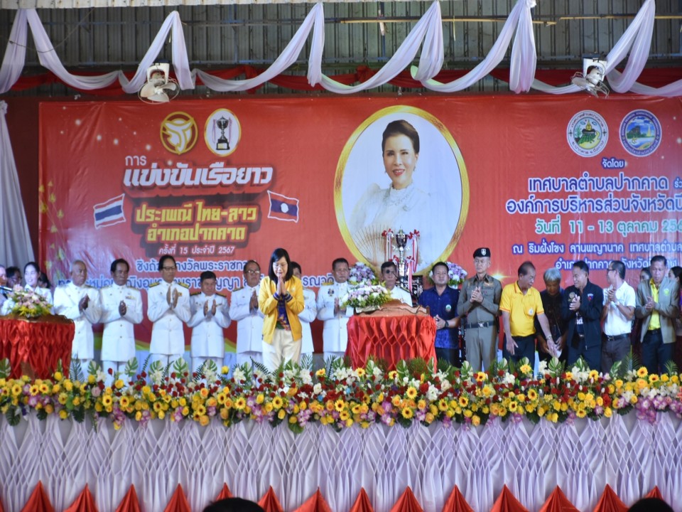 นางแว่นฟ้า ทองศรี นายกองค์การบริหารส่วนจังหวัดบึงกาฬ ได้เป็นประธานในพิธีปิดงานโครงการแข่งขันเรือยาวประเพณีไทย - ลาว อำเภอปากคาด