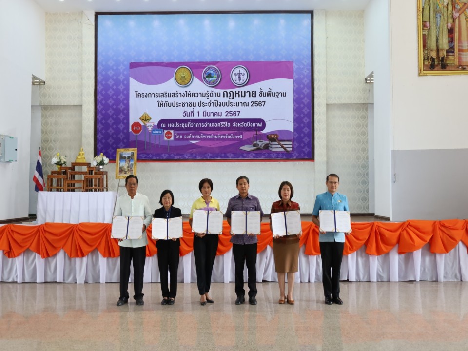 โครงการเสริมสร้างให้ความรู้ด้านกฎหมายขั้นพื้นฐานให้กับประชาชน ประจำปีงบประมาณ 2567 และพิธีรับมอบบันทึกข้อตกลงความร่วมมือ (MOU) ว่าด้วยการเสริมสร้างการรับรู้ด้านกฎหมายและการอยู่ร่วมกันภายใต้สังคมเคารพกติกา (Law Awareness & Culture of Lawfulness)