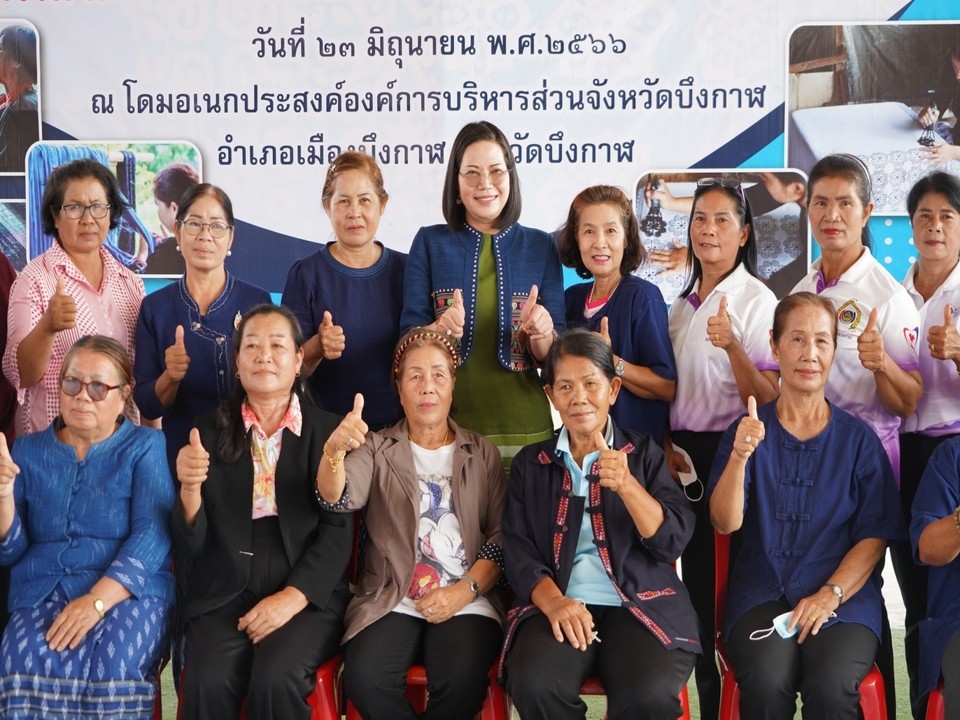 พิธีเปิดโครงการพัฒนาคุณภาพชีวิตให้กับผู้สูงอายุ และคนพิการจังหวัดบึงกาฬ ประจำปีงบประมาณ พ.ศ. 2566 กิจกรรม ฝึกการทำผ้าย้อมครามพิมพ์เทียนและผ้าย้อมจากใบไม้