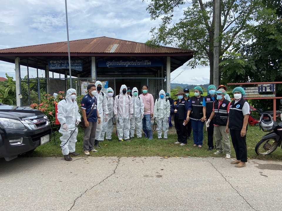 องค์การบริหารส่วนจังหวัดบึงกาฬฝ่ายป้องกันและบรรเทาสาธารณภัยดำเนินฉีดพ่นยาฆ่าเชื้อในพื้นที่แพร่ระบาดของโรคโควิด-19