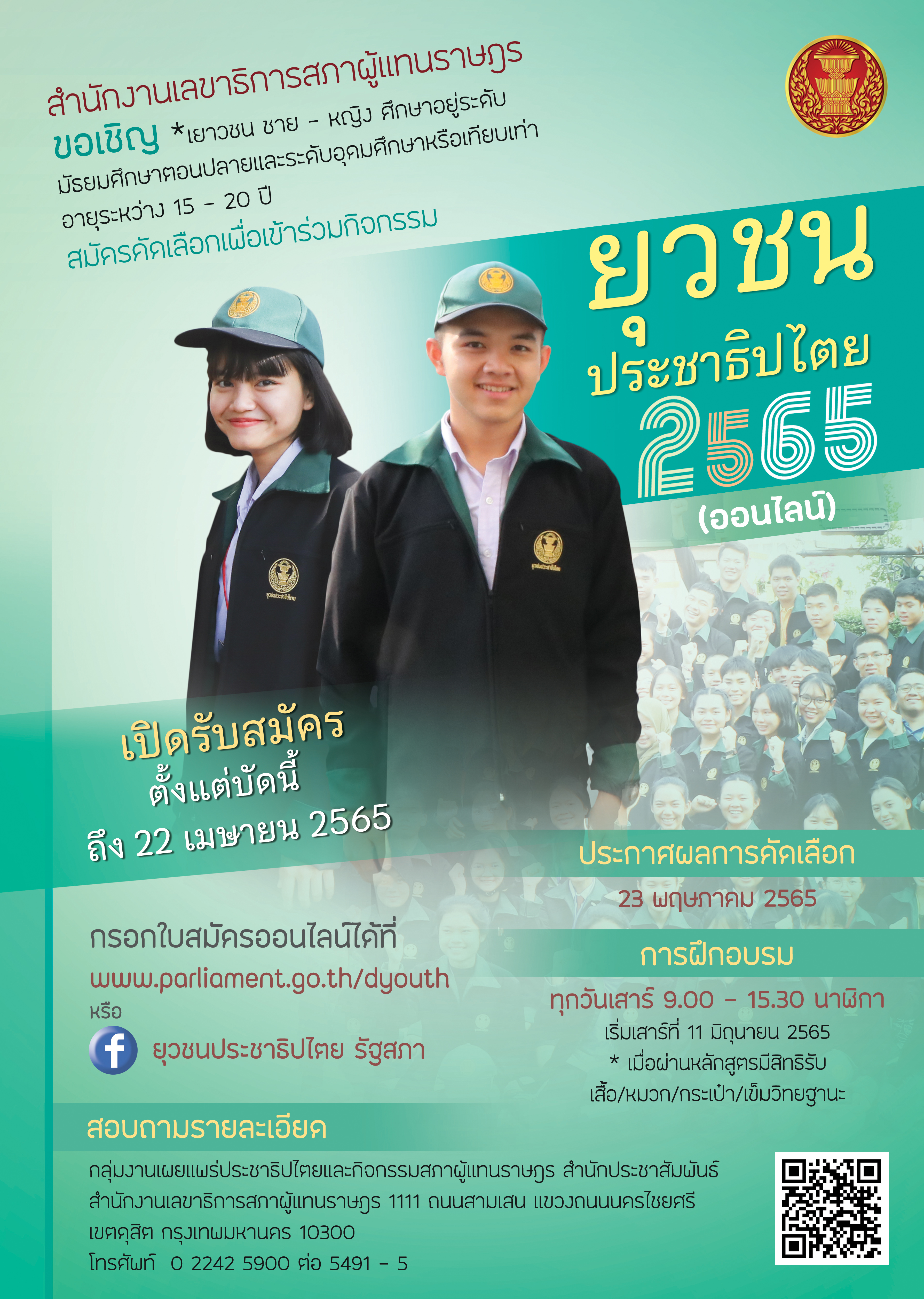 เปิดรับสมัครเข้าร่วมกิจกรรม “ยุวชนประชาธิปไตย (ออนไลน์) ประจำปี 2565”
