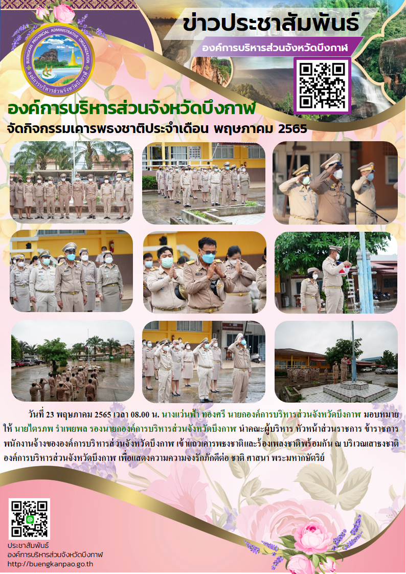 องค์การบริหารส่วนจังหวัดบึงกาฬ จัดกิจกรรมเคารพธงชาติประจำเดือน พฤษภาคม 2565
