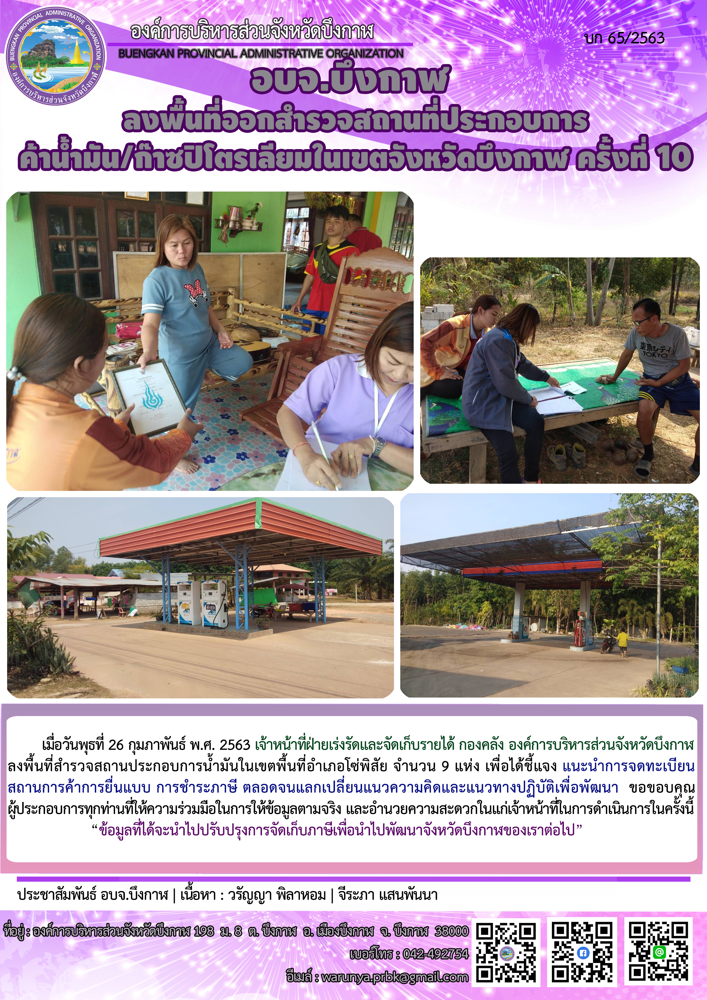 อบจ.บึงกาฬ ลงพื้นที่ออกสำรวจสถานที่ประกอบการค้าน้ำมันและก๊าซปิโตรเลียมในเขตจังหวัดบึงกาฬ ครั้งที่ 10