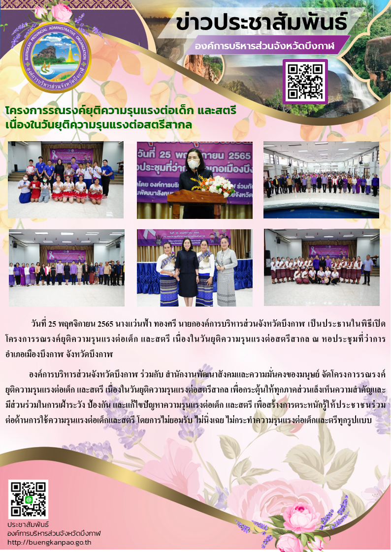 โครงการรณรงค์ยุติความรุนแรงต่อเด็ก และสตรี เนื่องในวันยุติความรุนแรงต่อสตรีสากล
