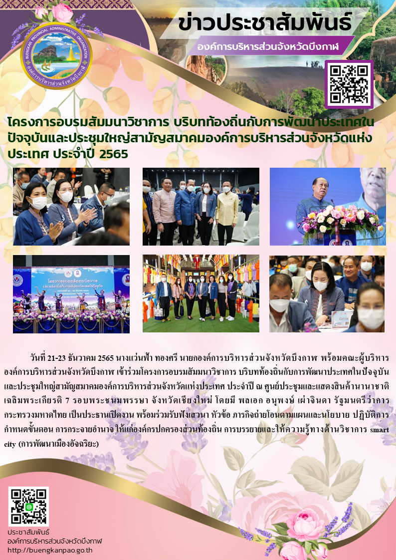 โครงการอบรมสัมมนาวิชาการ บริบทท้องถิ่นกับการพัฒนาประเทศในปัจจุบันและประชุมใหญ่สามัญสมาคมองค์การบริหารส่วนจังหวัดแห่งประเทศ ประจำปี 2565