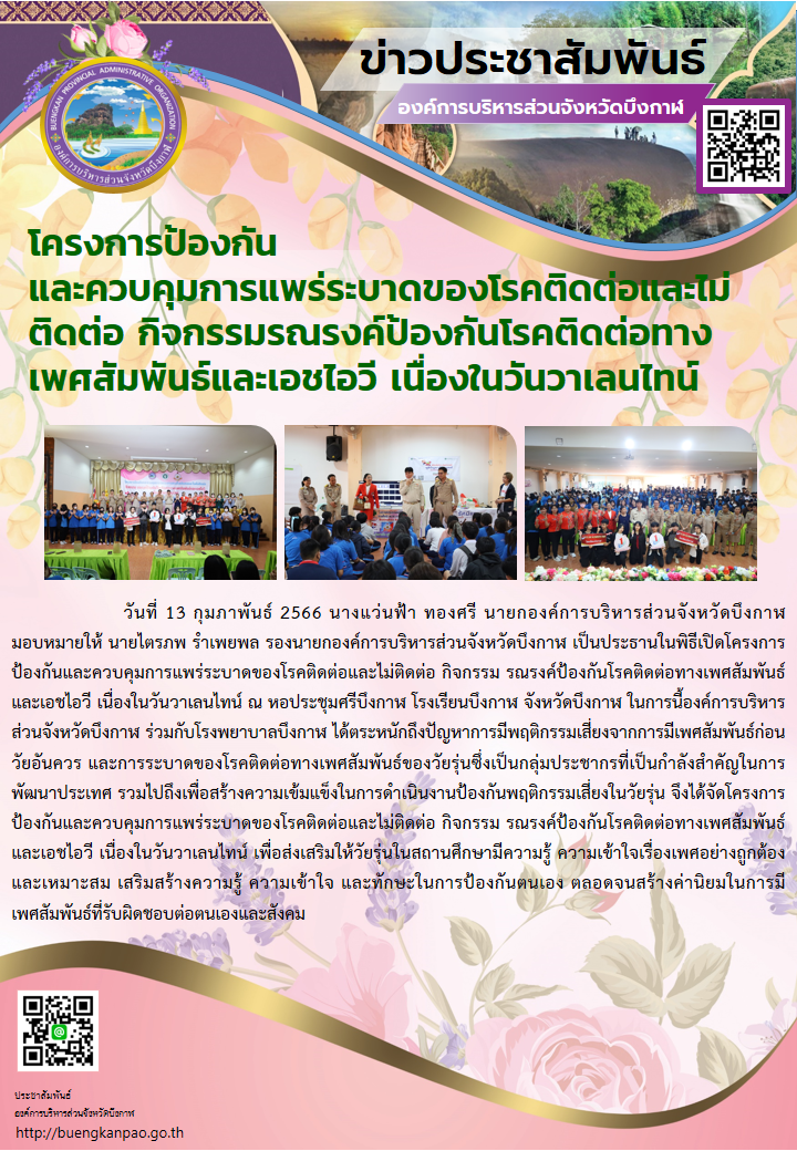 โครงการป้องกันและควบคุมการแพร่ระบาดของโรคติดต่อและไม่ติดต่อ กิจกรรมรณรงค์ป้องกันโรคติดต่อทางเพศสัมพันธ์และเอชไอวี เนื่องในวันวาเลนไทน์
