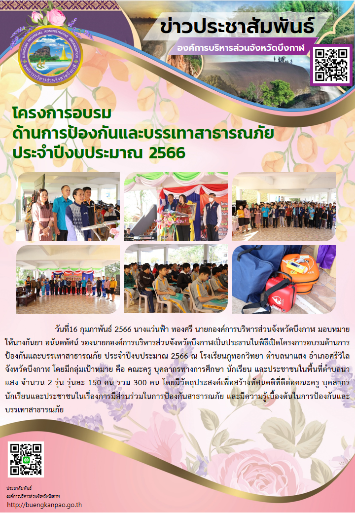 โครงการอบรม ด้านการป้องกันและบรรเทาสาธารณภัย ประจำปีงบประมาณ 2566