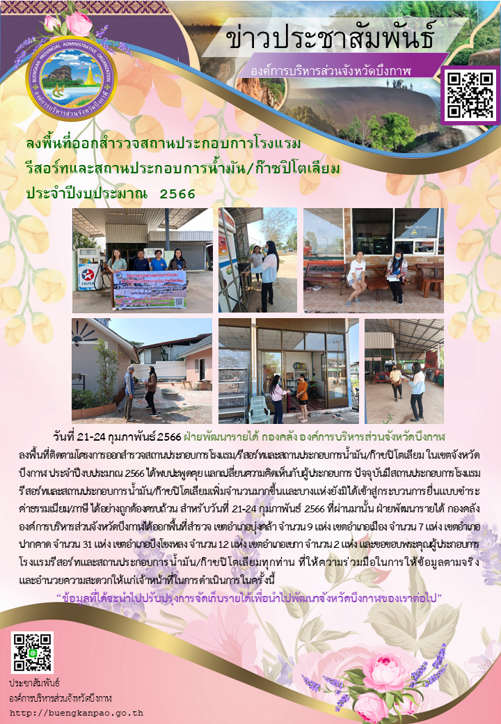 ลงพื้นที่ออกสำรวจสถานประกอบการโรงแรมรีสอร์ทและสถานประกอบการน้ำมัน/ก๊าซปิโตเลียม ประจำปีงบประมาณ 2566