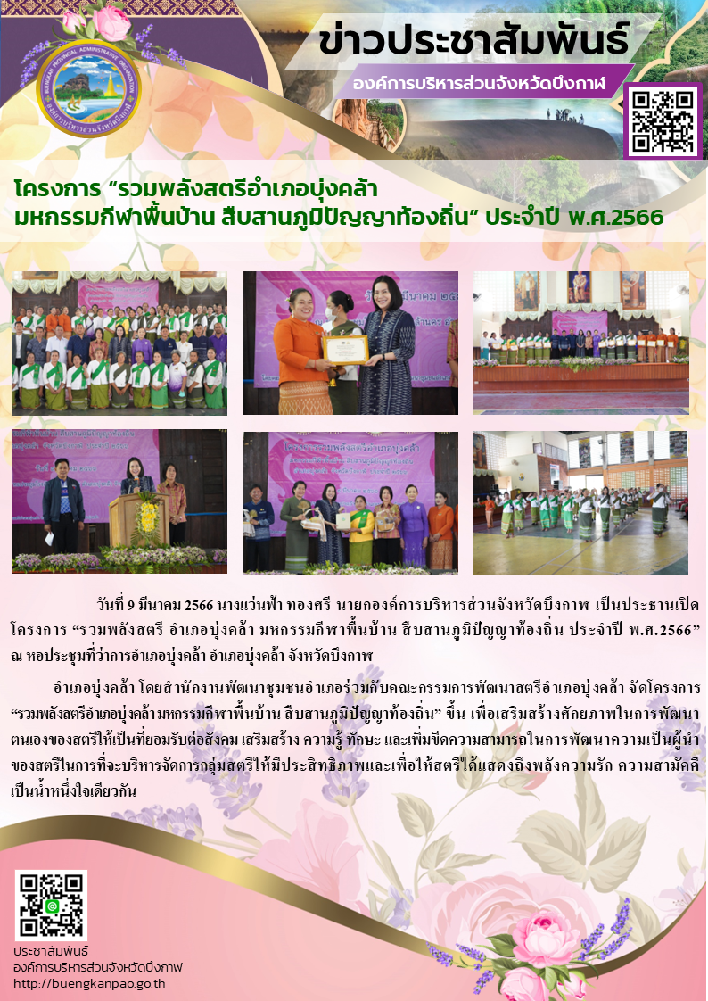โครงการ “รวมพลังสตรีอำเภอบุ่งคล้า มหกรรมกีฬาพื้นบ้าน สืบสานภูมิปัญญาท้องถิ่น” ประจำปี พ.ศ.2566