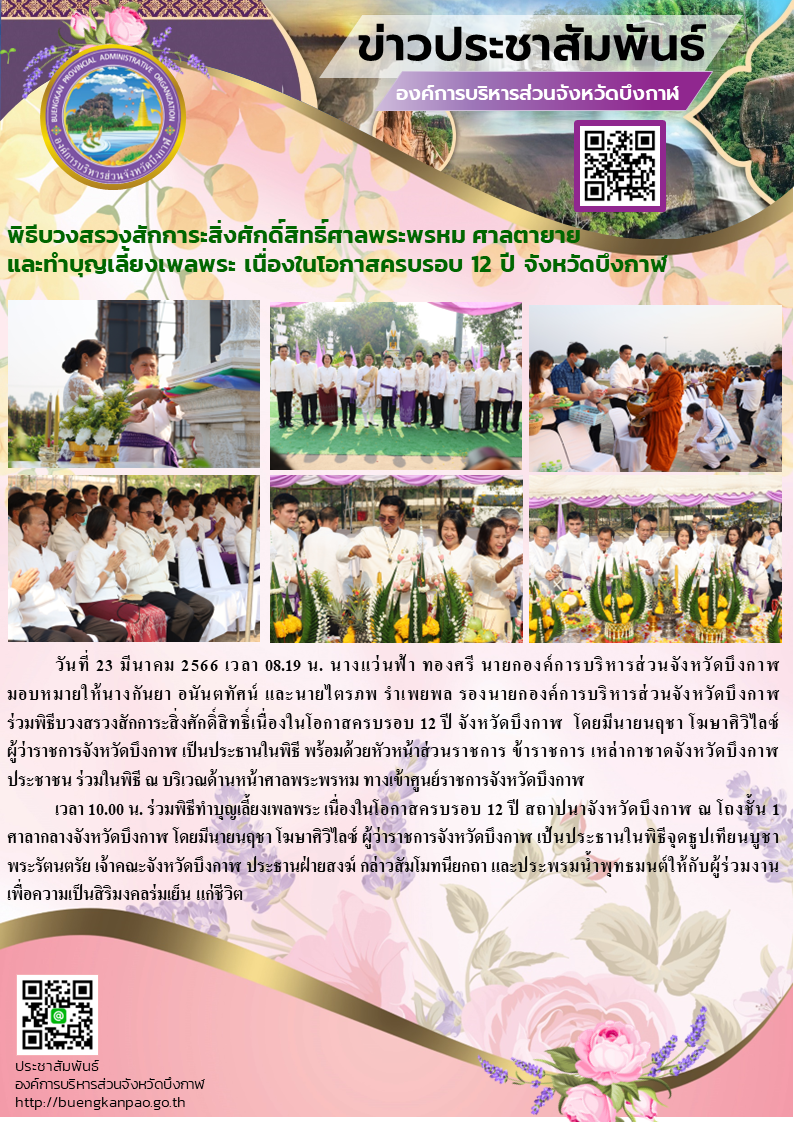 พิธีบวงสรวงสักการะสิ่งศักดิ์สิทธิ์ศาลพระพรหม ศาลตายาย และทำบุญเลี้ยงเพลพระ เนื่องในโอกาสครบรอบ 12 ปี จังหวัดบึงกาฬ