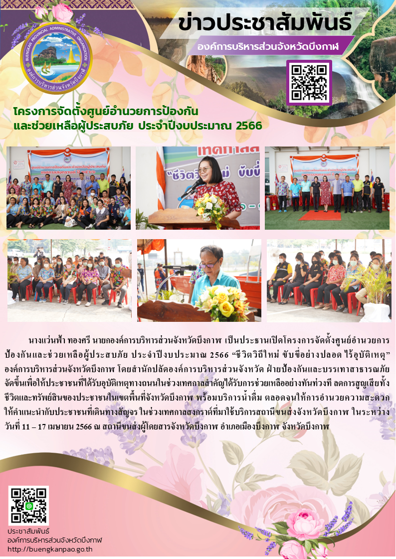 โครงการจัดตั้งศูนย์อำนวยการป้องกัน และช่วยเหลือผู้ประสบภัย ประจำปีงบประมาณ 2566