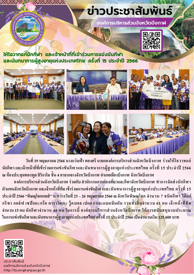 ให้โอวาทแก่นักกีฬา และเจ้าหน้าที่ที่เข้าร่วมการแข่งขันกีฬา และนันทนาการผู้สูงอายุแห่งประเทศไทย ครั้งที่ 15 ประจำปี 2566