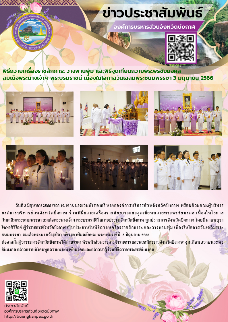 พิธีถวายเครื่องราชสักการะ วางพานพุ่ม และพิธีจุดเทียนถวายพระพรชัยมงคล สมเด็จพระนางเจ้าฯ พระบรมราชินี เนื่องในโอกาสวันเฉลิมพระชนมพรรษา 3 มิถุนายน 2566
