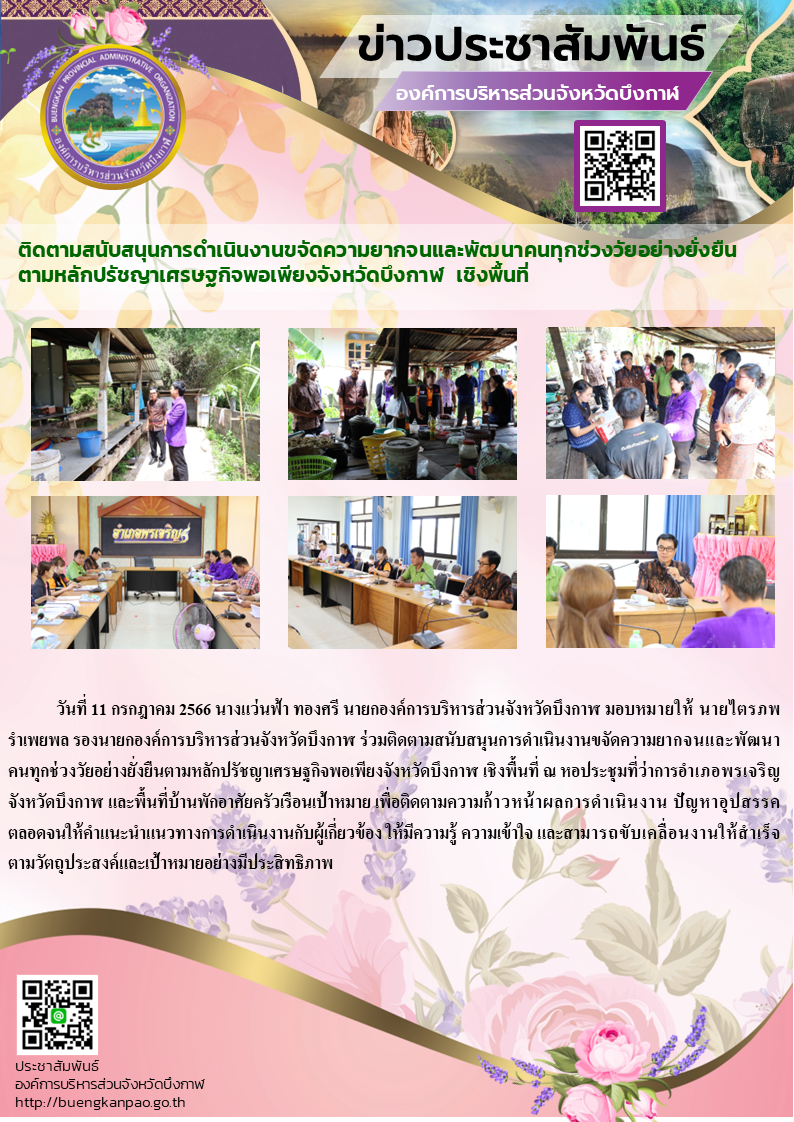 ติดตามสนับสนุนการดำเนินงานขจัดความยากจนและพัฒนาคนทุกช่วงวัยอย่างยั่งยืน ตามหลักปรัชญาเศรษฐกิจพอเพียงจังหวัดบึงกาฬ เชิงพื้นที่
