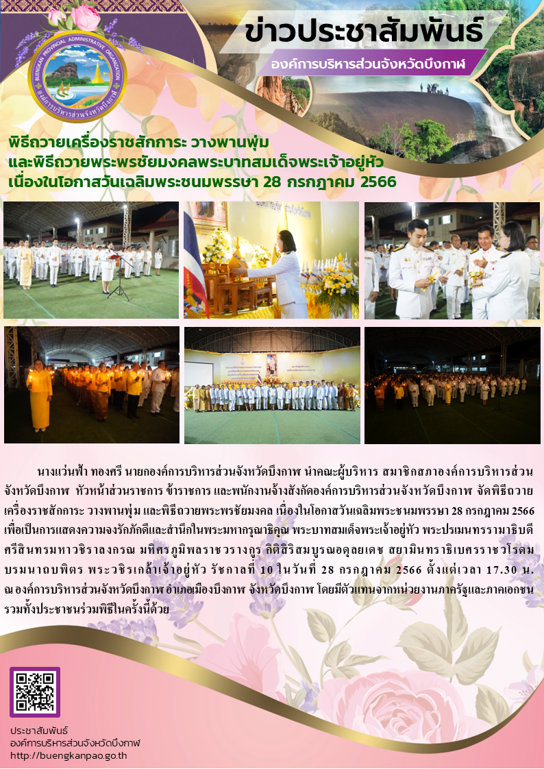 พิธีถวายเครื่องราชสักการะ วางพานพุ่ม และพิธีถวายพระพรชัยมงคลพระบาทสมเด็จพระเจ้าอยู่หัว เนื่องในโอกาสวันเฉลิมพระชนมพรรษา 28 กรกฎาคม 2566