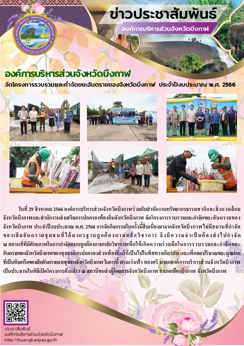องค์การบริหารส่วนจังหวัดบึงกาฬจัดโครงการรวบรวมและกำจัดขยะอันตรายของจังหวัดบึงกาฬ ประจำปีงบประมาณ พ.ศ. 2566