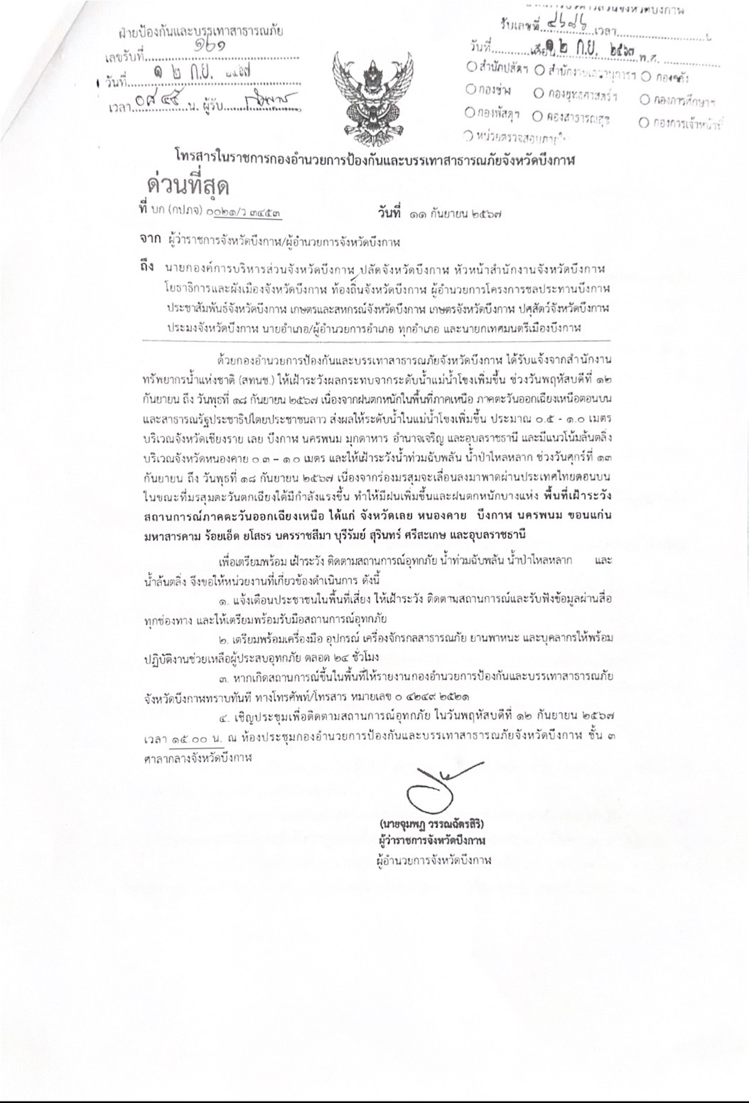 เตรียมความพร้อม เฝ้าระวังน้ำท่วมฉับพลัน น้ำป่าไหลหลาก และน้ำล้นตลิ่ง ระหว่างวันที่ 13-18 กันยายน 2567