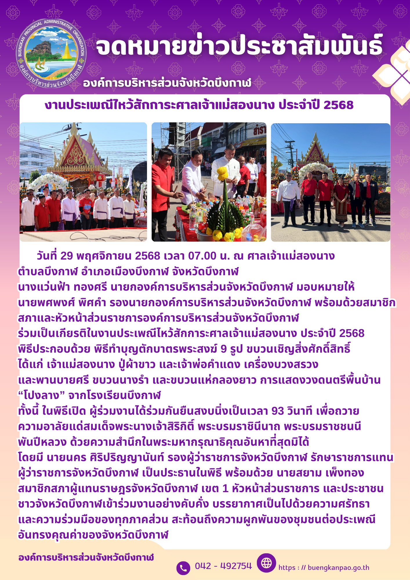 งานประเพณีไหว้สักการะศาลเจ้าแม่สองนาง ประจำปี 2568