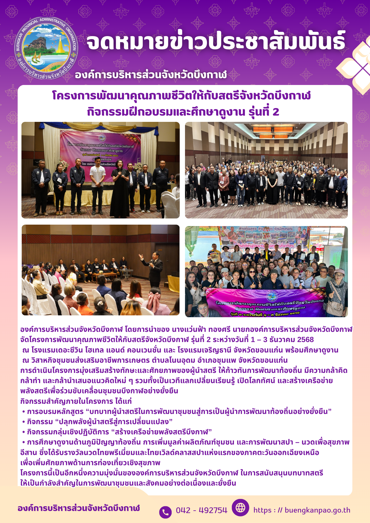 โครงการพัฒนาคุณภาพชีวิตให้กับสตรีจังหวัดบึงกาฬ – กิจกรรมฝึกอบรมและศึกษาดูงาน รุ่นที่ 2