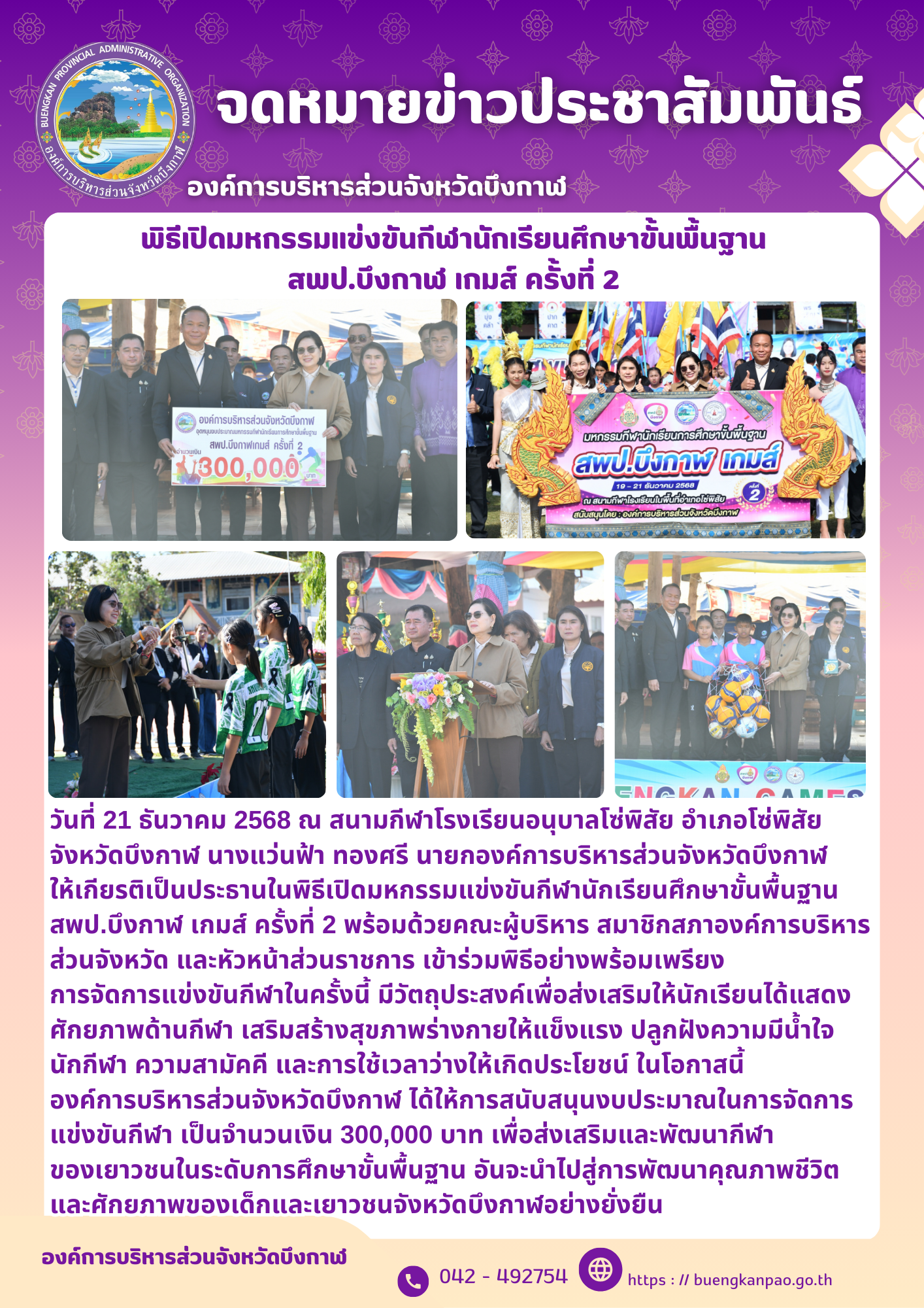 พิธีเปิดมหกรรมแข่งขันกีฬานักเรียนศึกษาขั้นพื้นฐาน สพป.บึงกาฬ เกมส์ ครั้งที่ 2