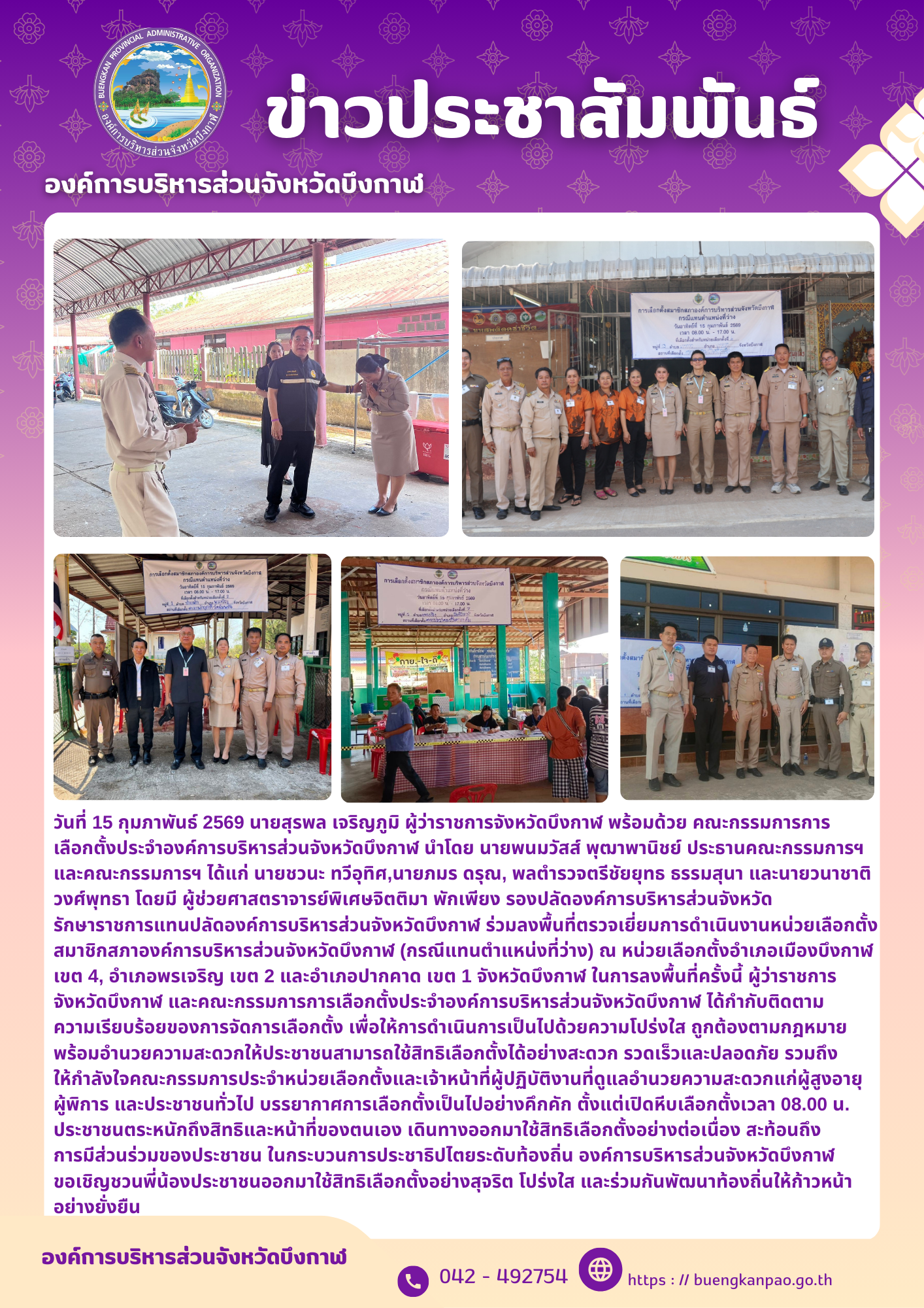 ลงพื้นที่ตรวจเยี่ยมการดำเนินงานหน่วยเลือกตั้งสมาชิกสภาองค์การบริหารส่วนจังหวัดบึงกาฬ (กรณีแทนตำแหน่งที่ว่าง)