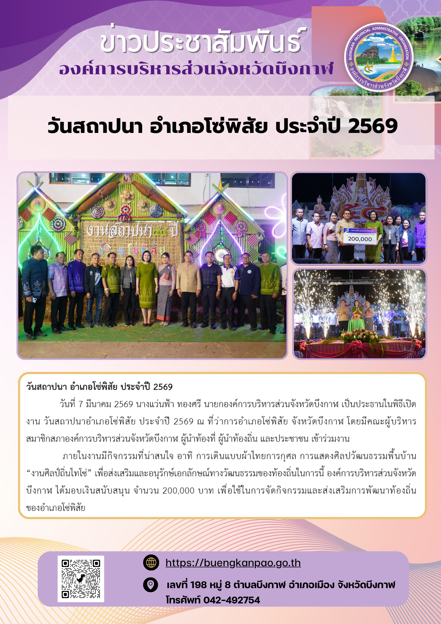 วันสถาปนา อำเภอโซ่พิสัย ประจำปี 2569