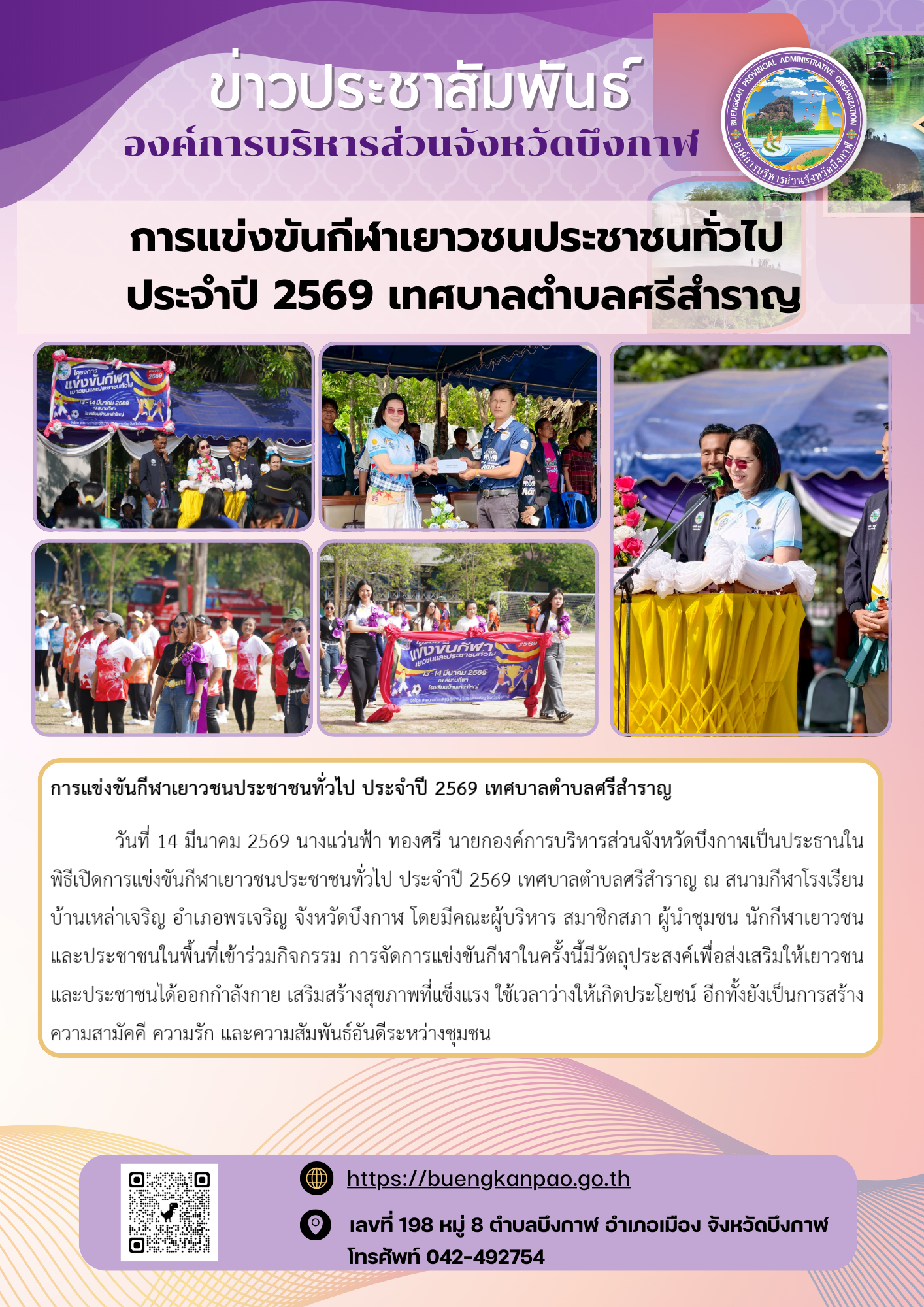 การแข่งขันกีฬาเยาวชนประชาชนทั่วไป ประจำปี 2569 เทศบาลตำบลศรีสำราญ