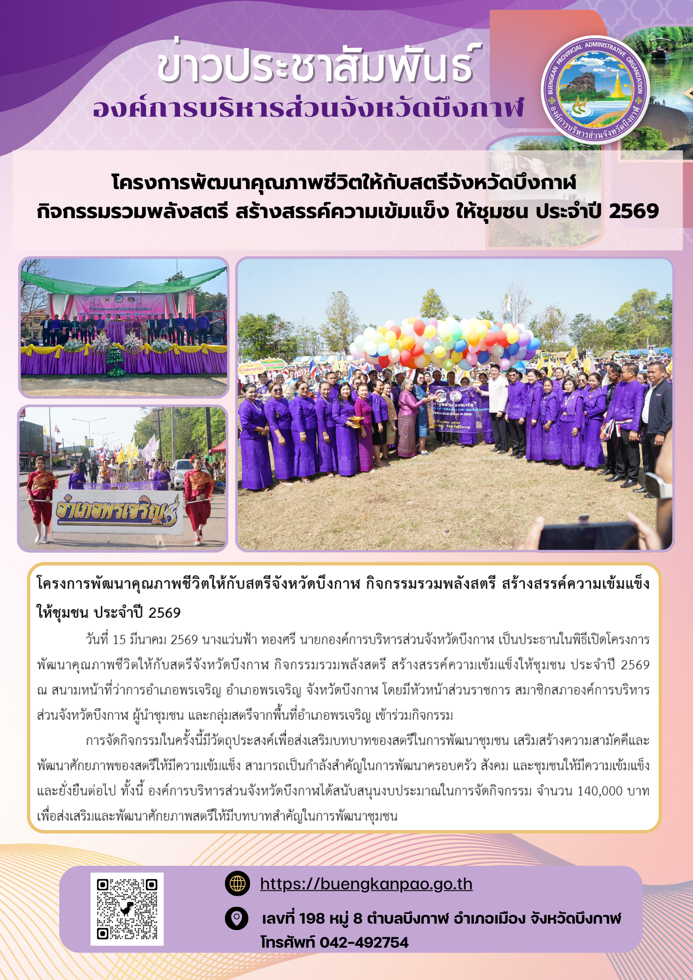 โครงการพัฒนาคุณภาพชีวิตให้กับสตรีจังหวัดบึงกาฬ กิจกรรมรวมพลังสตรี สร้างสรรค์ความเข้มแข็งให้ชุมชน ประจำปี 2569