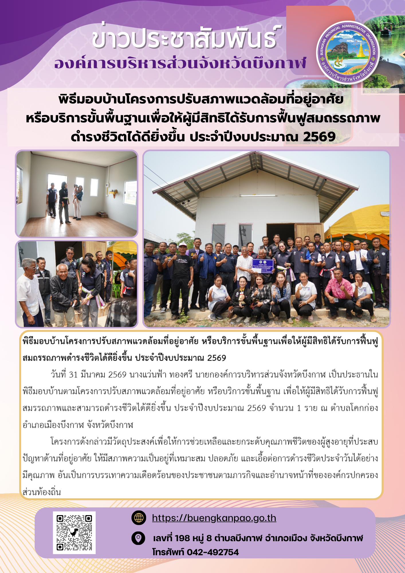 พิธีมอบบ้านโครงการปรับสภาพแวดล้อมที่อยู่อาศัย หรือบริการขั้นพื้นฐานเพื่อให้ผู้มีสิทธิได้รับการฟื้นฟูสมถรรถภาพดำรงชีวิตได้ดียิ่งขึ้น ประจำปีงบประมาณ 2569