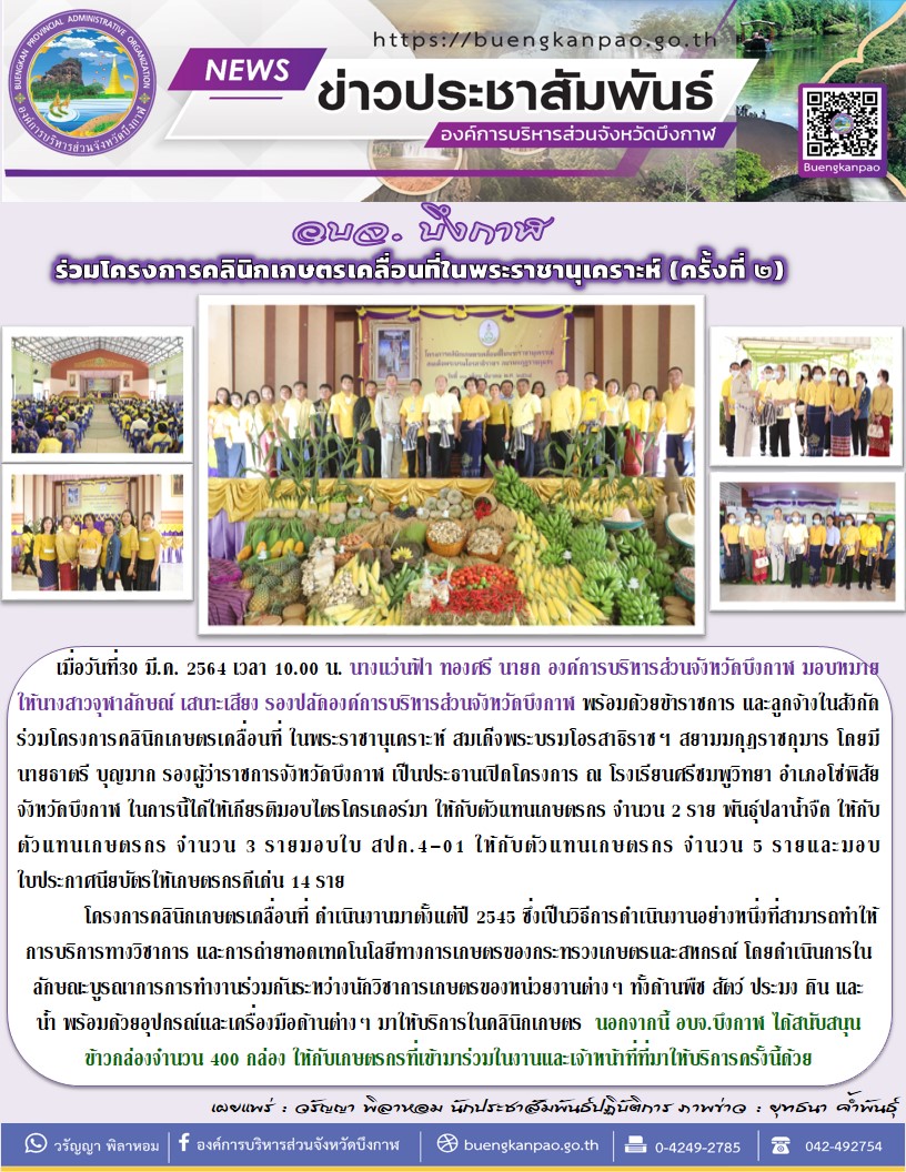อบจ.บึงกาฬ ร่วมโครงการคลินิกเกษตรเคลื่อนที่ในพระราชานุเคราะห์ (ครั้งที่ ๒)