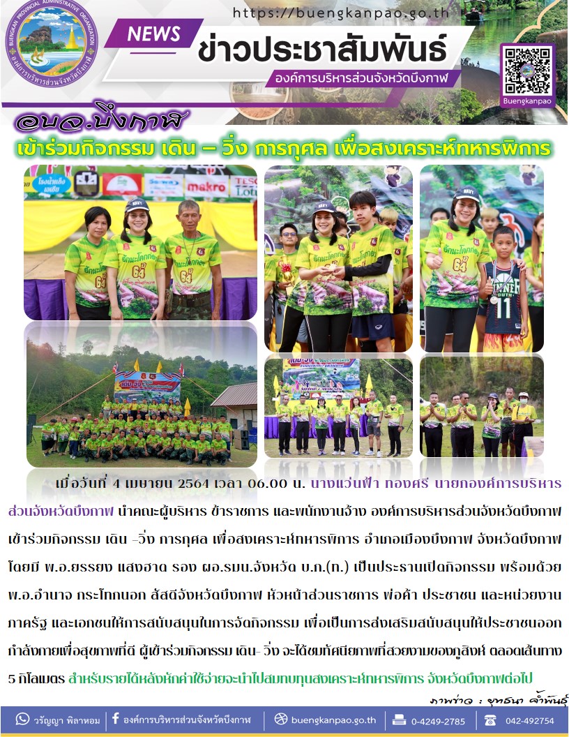 อบจ.บึงกาฬเข้าร่วมกิจกรรม เดิน – วิ่ง การกุศล เพื่อสงเคราะห์ทหารพิการ