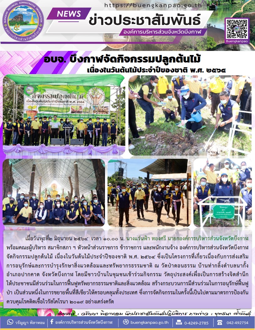 อบจ. บึงกาฬจัดกิจกรรมปลูกต้นไม้ เนื่องในวันต้นไม้ประจำปีของชาติ พ.ศ. ๒๕๖๔