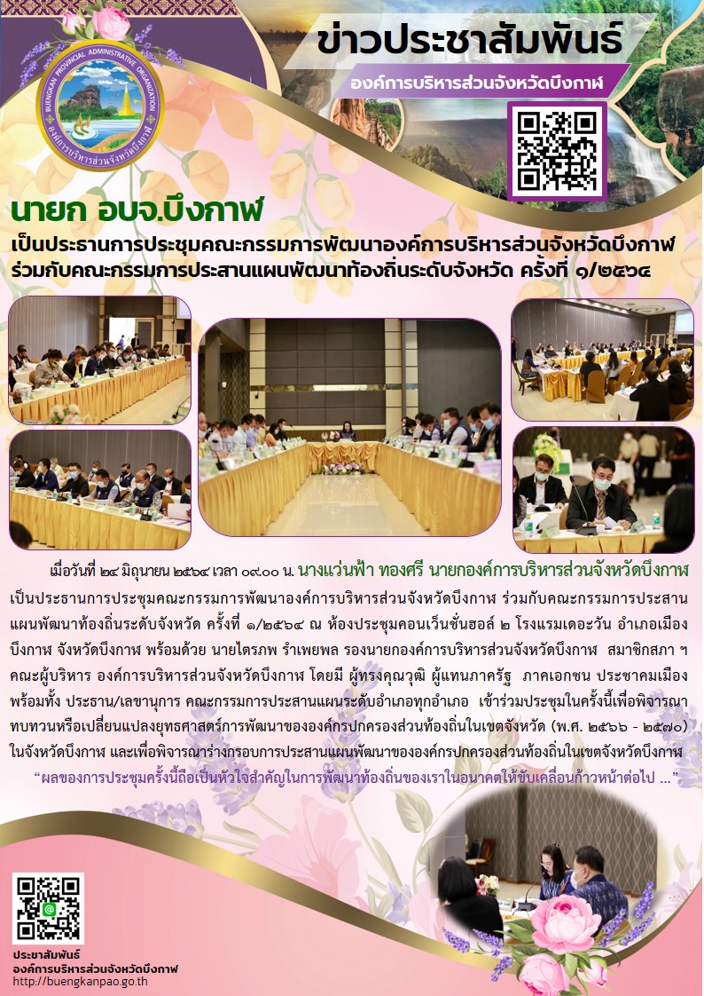 นายก อบจ.บึงกาฬ เป็นประธานการประชุมคณะกรรมการพัฒนาองค์การบริหารส่วนจังหวัดบึงกาฬ ร่วมกับคณะกรรมการประสานแผนพัฒนาท้องถิ่นระดับจังหวัด ครั้งที่ ๑/๒๕๖๔