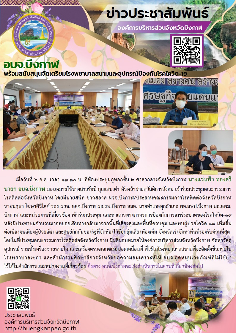 อบจ.บึงกาฬพร้อมสนับสนุนจัดเตรียมโรงพยาบาลสนามและอุปกรณ์ป้องกันโรคโควิด-19
