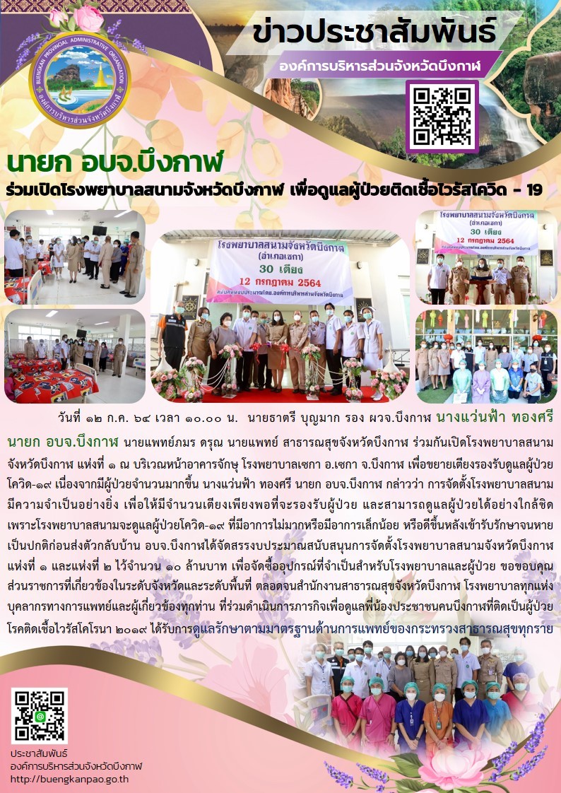 นายก อบจ.บึงกาฬ ร่วมเปิดโรงพยาบาลสนามจังหวัดบึงกาฬ เพื่อดูแลผู้ป่วยติดเชื้อไวรัสโควิด -19