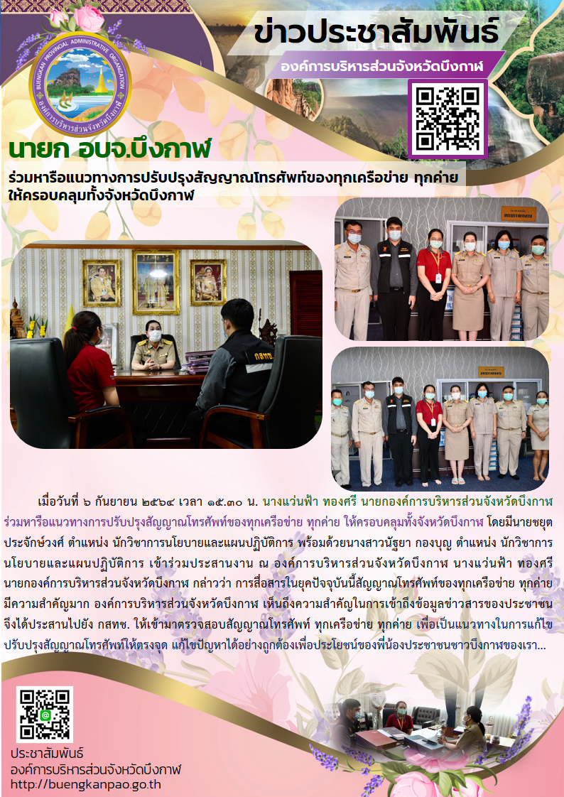 นายกองค์การบริหารส่วนจังหวัดบึงกาฬ ร่วมหารือแนวทางการปรับปรุงสัญญาณโทรศัพท์ของทุกเครือข่าย ทุกค่าย ให้ครอบคลุมทั้งจังหวัดบึงกาฬ
