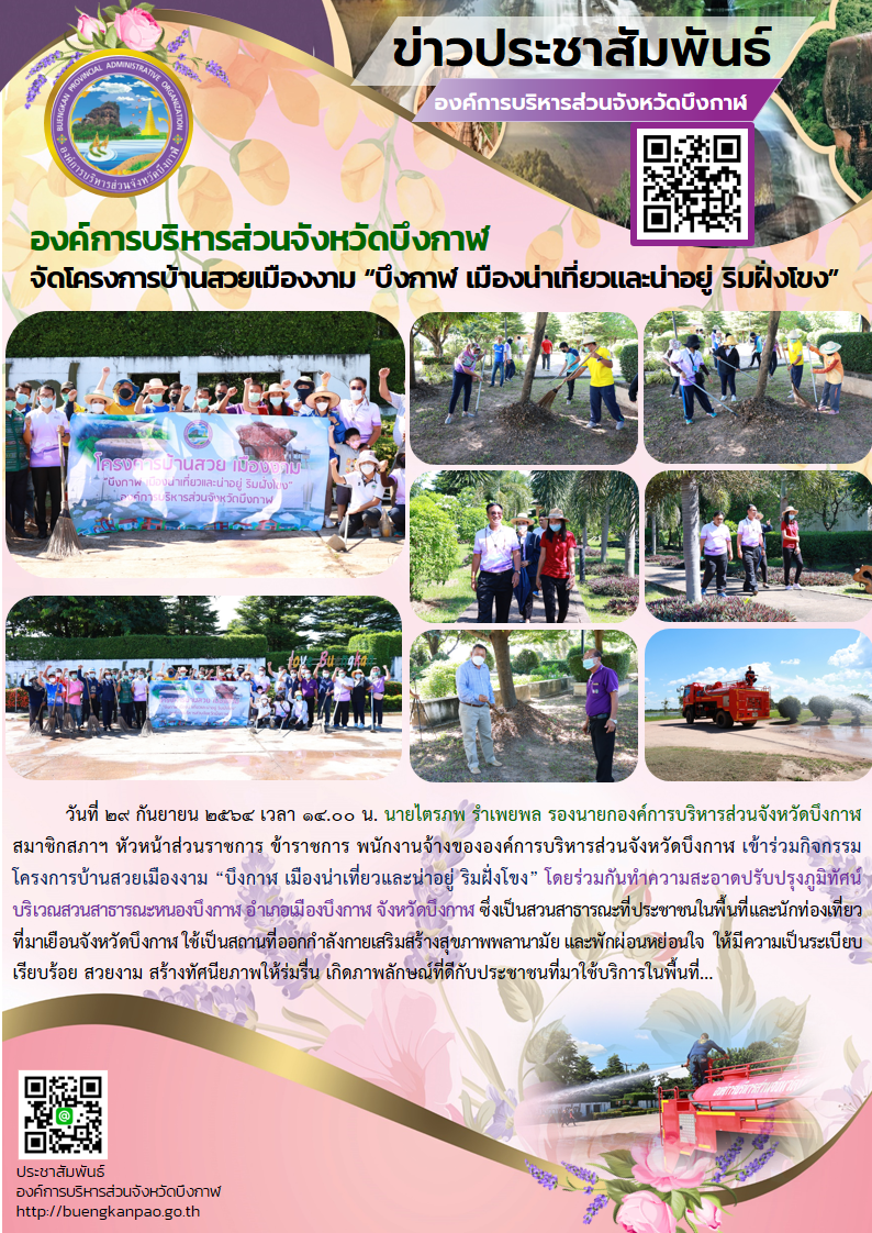 องค์การบริหารส่วนจังหวัดบึงกาฬ จัดโครงการบ้านสวยเมืองงาม “บึงกาฬ เมืองน่าเที่ยวและน่าอยู่ ริมฝั่งโขง”