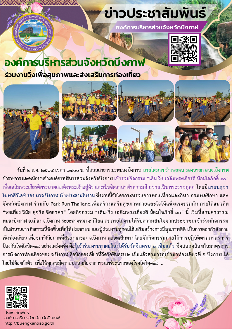 องค์การบริหารส่วนจังหวัดบึงกาฬ ร่วมงานวิ่งเพื่อสุขภาพและส่งเสริมการท่องเที่ยว