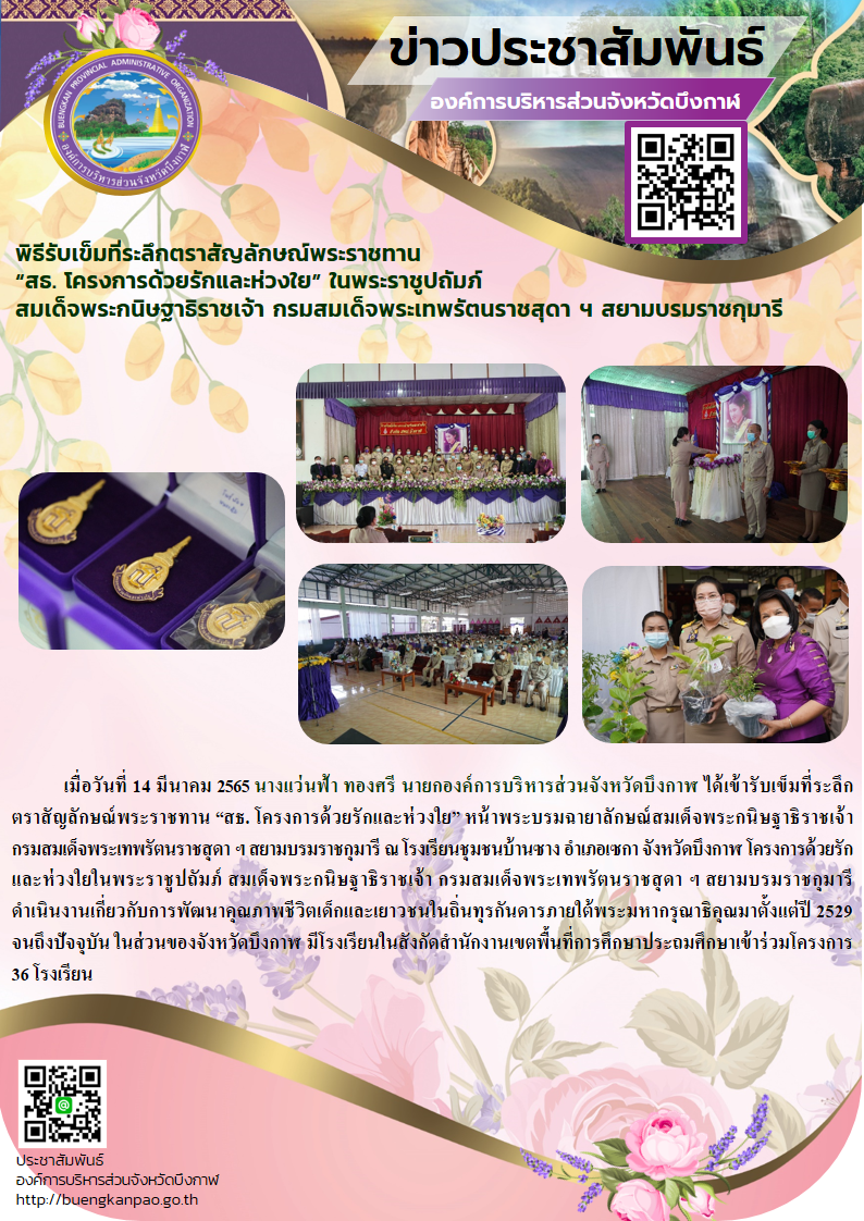 พิธีรับเข็มที่ระลึกตราสัญลักษณ์พระราชทาน “สธ. โครงการด้วยรักและห่วงใย” ในพระราชูปถัมภ์ สมเด็จพระกนิษฐาธิราชเจ้า กรมสมเด็จพระเทพรัตนราชสุดา ฯ สยามบรมราชกุมารี