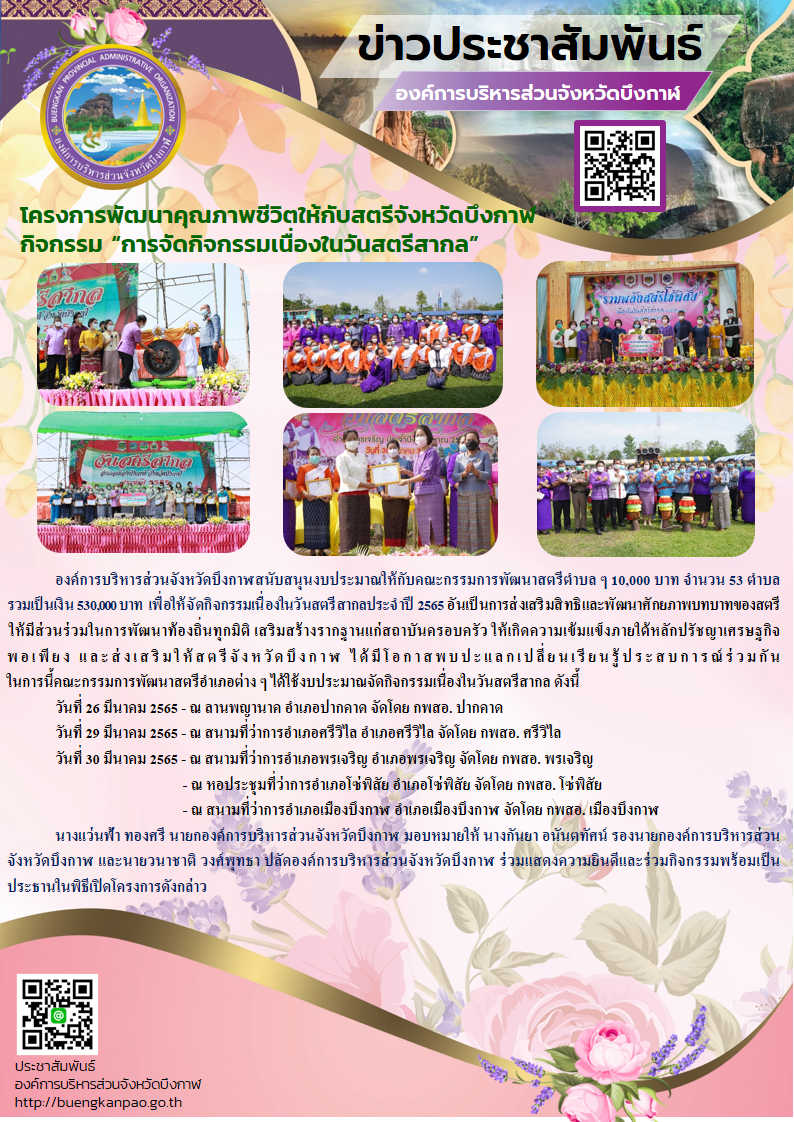 โครงการพัฒนาคุณภาพชีวิตให้กับสตรีจังหวัดบึงกาฬ กิจกรรม “การจัดกิจกรรมเนื่องในวันสตรีสากล”